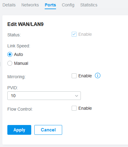 I’ve got one managed switch in my setup. I haven’t taken a deep look at the configuration options yet, but setting VLANs to ports works just like with the router ports. VLANs are assigned on the Ports tab that can be reached via Devices.
